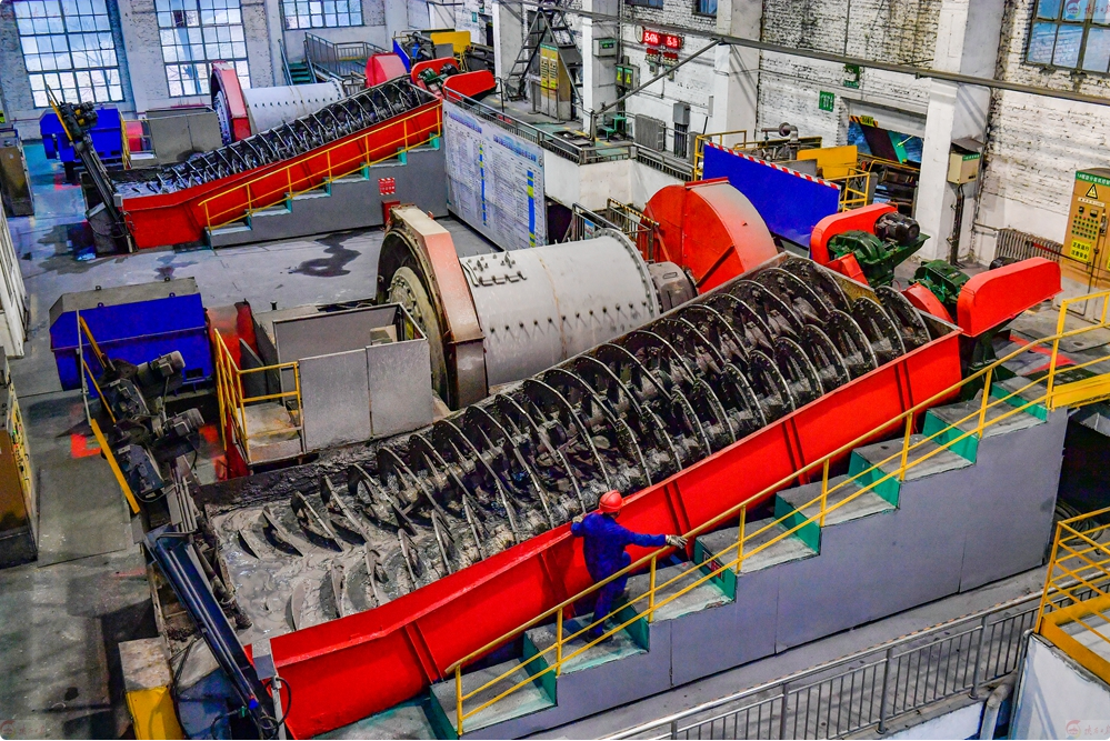 12月13日,在陕西西北有色铅锌集团有限公司权属企业-陕西铅硐山矿业有限公司选矿车间,工人进行浮选作业。