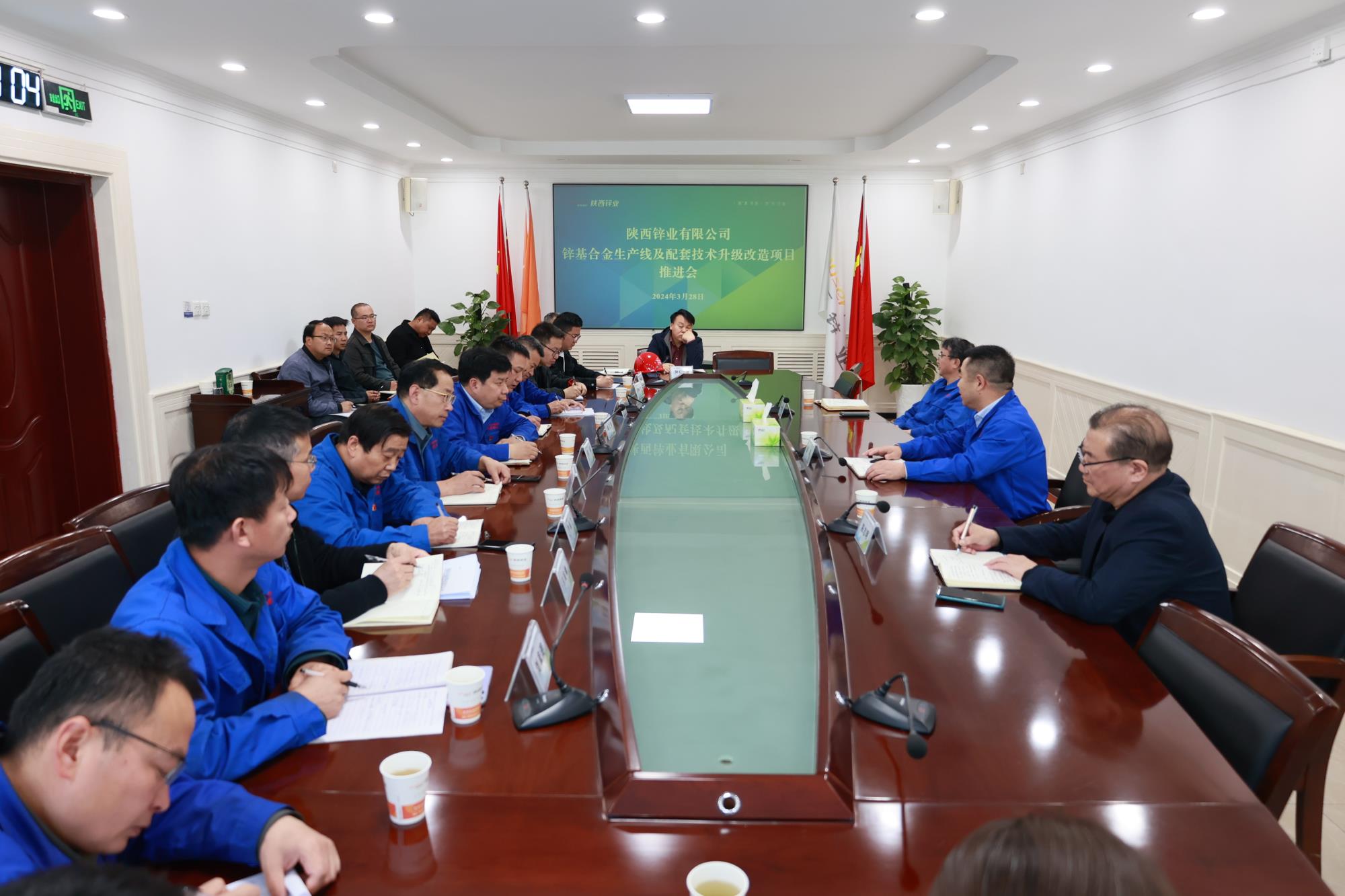 3月28日,陕西锌业公司召开锌基合金生产线及配套技术升级改造项目推进会,听取项目建设推进情况,研究解决堵点难点问题,对项目建设工作再安排、再推进。党委副书记、总经理徐靖出席会议并讲话,公司经营班子,锌基合金项目组、施工单位、监理单位,以及有关部室主任等参加会议。