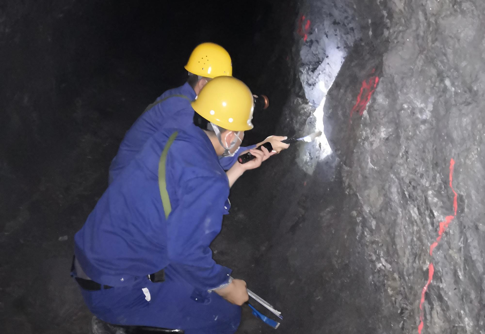 ▲宝鸡凤县东塘子铅锌矿床86线以西详查项目组人员开展坑道调研