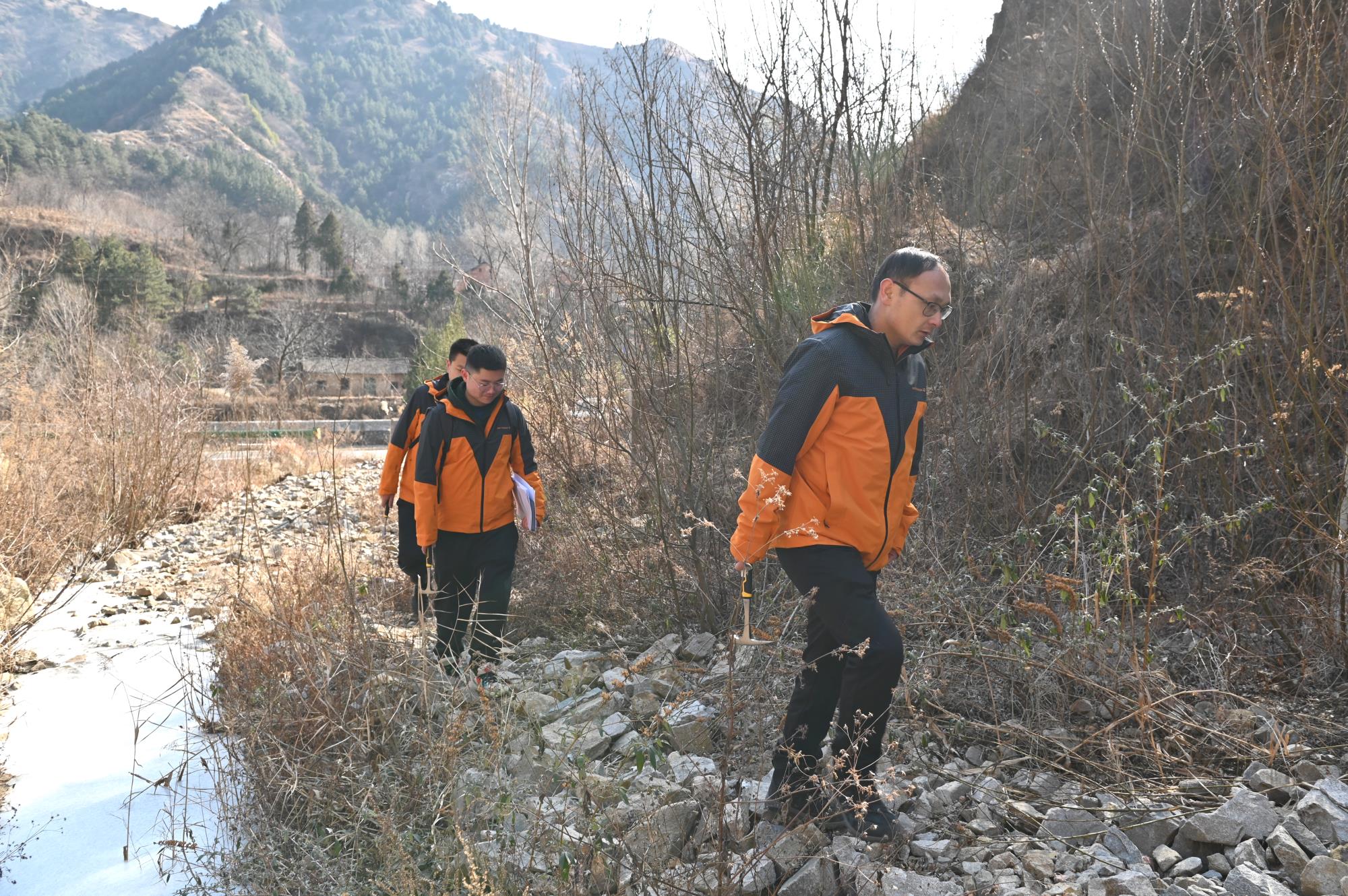 ▲陕西省商州区北宽坪铜银矿普查项目地质人员进行地质路线调查