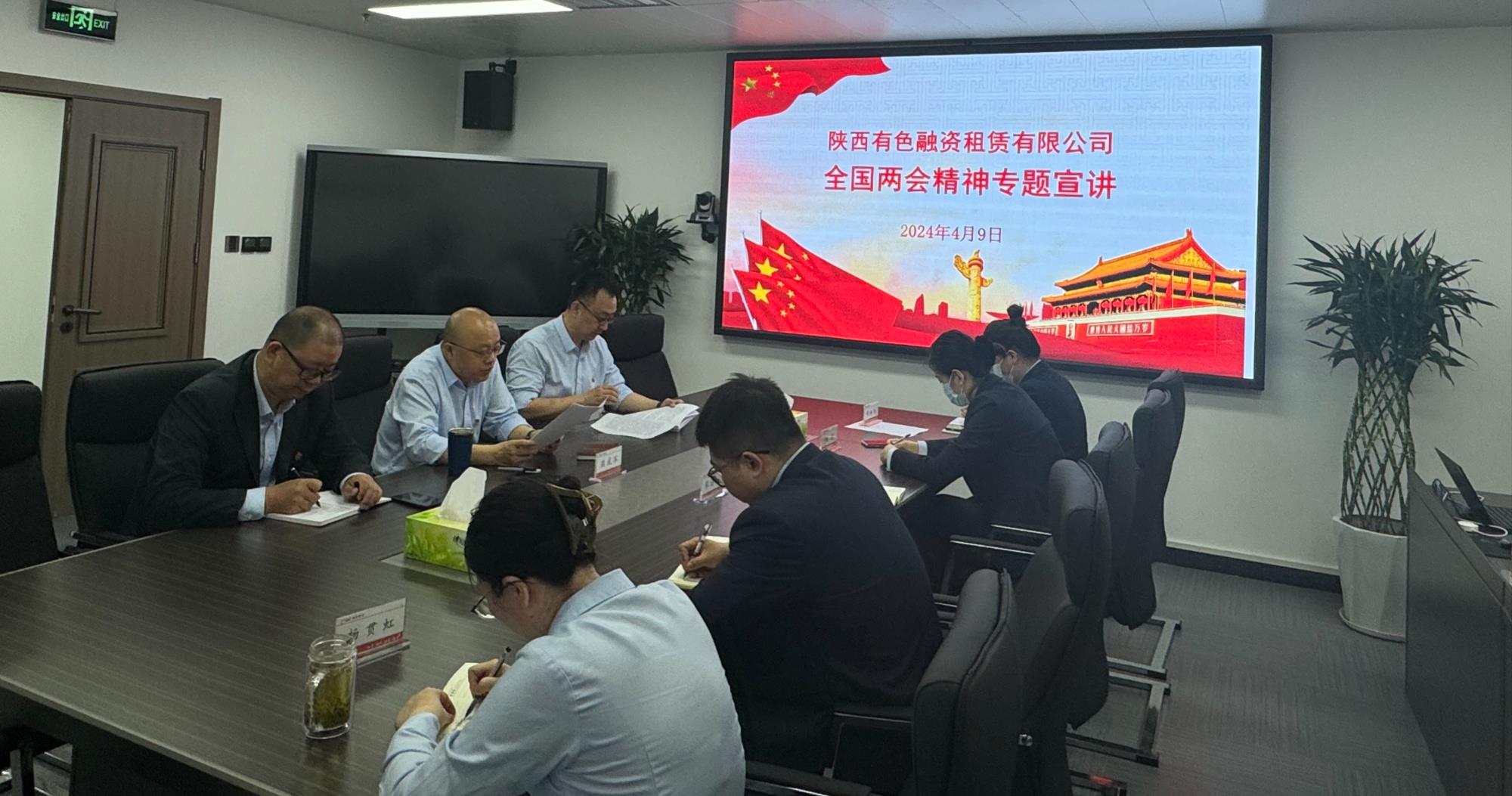 为深入学习宣传贯彻全国两会精神特别是习近平总书记在全国两会上的重要讲话精神,4月9日上午,陕西有色融资租赁有限公司召开了全国两会精神专题宣讲会,全体干部职工参会。