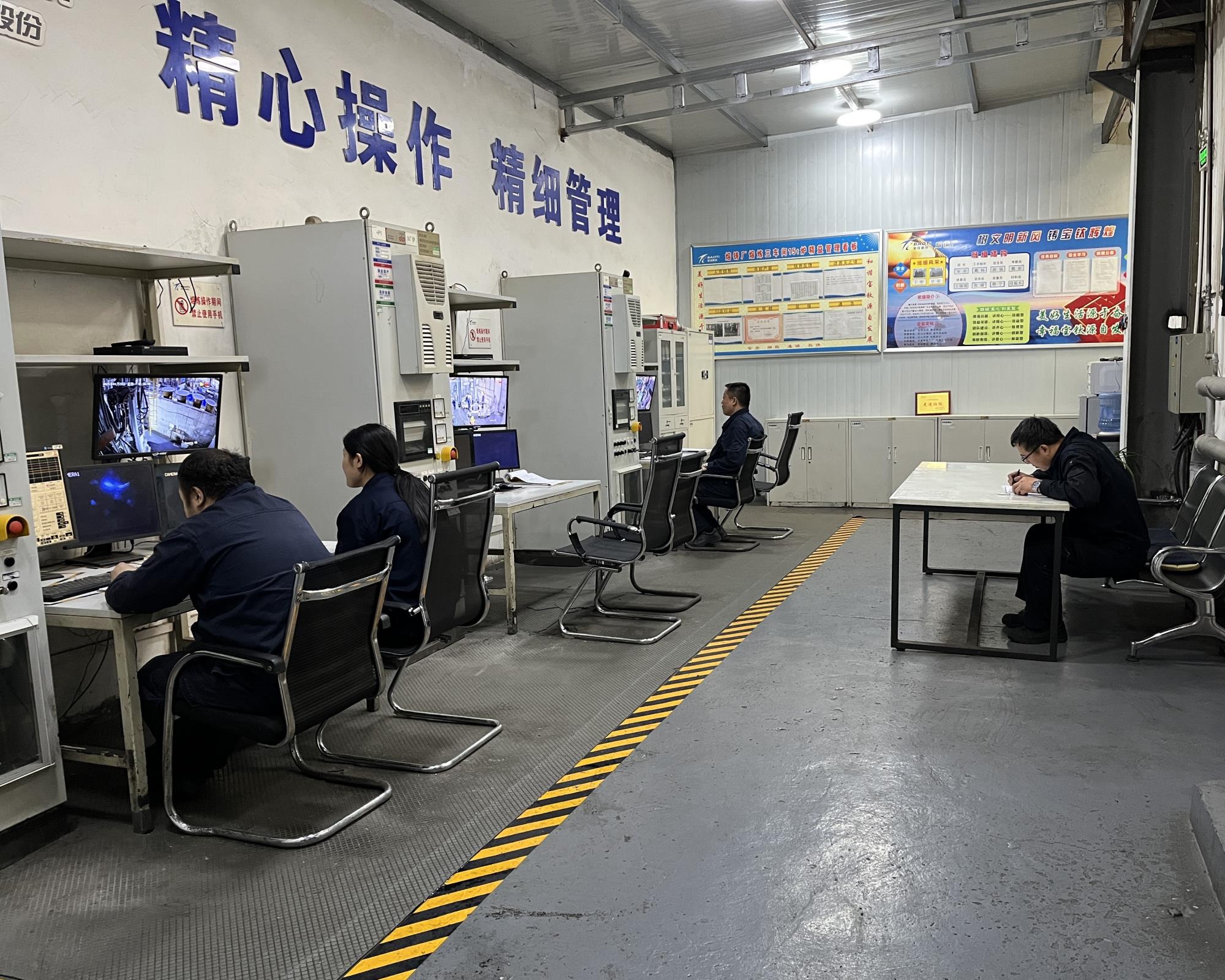 宝钛集团熔铸厂熔三车间15吨炉班组是一支专业素养高、综合技术能力强的优秀生产团队,自2020年以来一直保持着四星级班组的荣誉称号。近年来,班组积极参加各种形式的劳动竞赛和创新活动,始终以创建“工人先锋号”为工作目标,以“先锋班组,赢在执行”为口号,坚持“学习型”“奉献型”“节约型”“业绩型”的工作思路,狠抓班组基础建设,围绕追赶超越的既定奋斗目标,出色地完成了集团下达的各项考核指标,取得了设备高运转、生产高效益的良好成绩。2023年,15吨炉班组熔炼生产总通过量同比增长18%;成品铸锭产量占分厂总产量的32.7%,其中重要用途成品铸锭产量占分厂重要用途铸锭总产量的27.9%;镍、锆成品产量100吨,全年设备可开动率达98%。