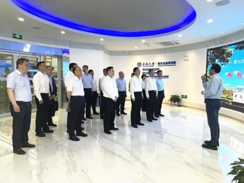 座谈会前,中南大学粉末冶金研究院党委书记、教授王德志陪同吴群英一行参观粉末冶金国家重点实验室。