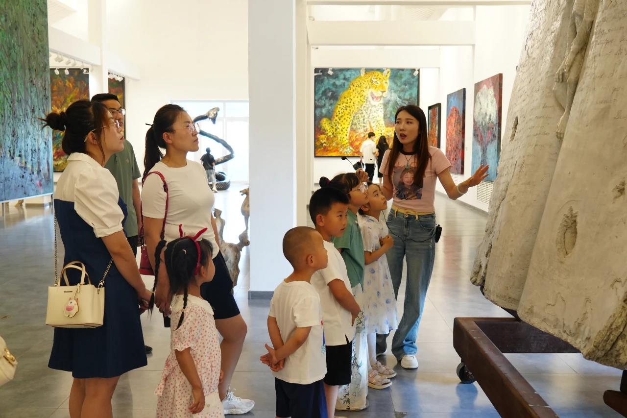 参加活动的家庭还参观了美术馆的展览。榆林市渡渡美术馆内陈列着各种风格的艺术作品,从古典油画到现代雕塑,每一件作品都让参观的家庭驻足良久。通过讲解员细致的介绍,孩子们不仅享受到了美的熏陶,还增长了见识,拓宽了视野。这样的安排使得孩子们在愉悦的氛围中接触丰富的艺术形式,同时也学到了新知识,提升了对美的认知和感知能力。
