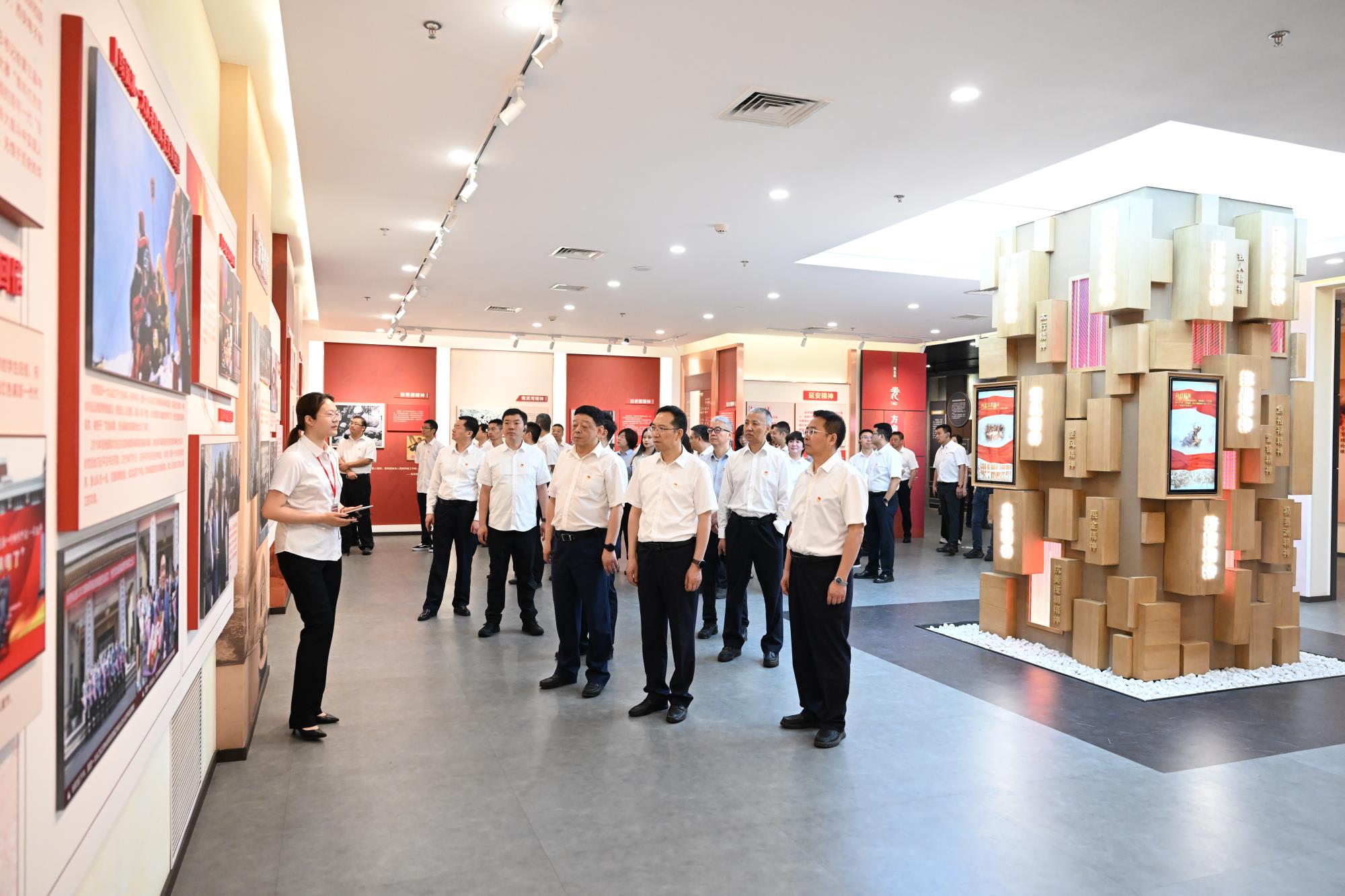 在参观现场,大家首先观看了视频短片《立碑》,接着依次学习参观了分别以“省(请你思考)、心(不忘初心)、律(铁打党纪)、诫(沉痛教训)、儆(警钟长鸣)、光(方向指引)、率(榜样力量)、进(全新篇章)、诺(照镜自警)”命名的九个展区。通过聆听讲解、观看展板、视频播放、互动查询、场景还原等对党的初心使命内涵、党的纪律建设历程、党的精神谱系发展有了更深理解,对党风廉政建设和反腐败斗争成效有了更直观了解。参观结束后,党员们重温入党誓词,重忆入党初心。