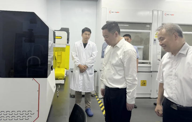 莫勇一行深入西安汇创公司产品展厅、扫描电镜及3D打印表面处理室、贵金属分析仪器室、贵金属氢能催化研究室及金属3D打印研究室现场了解企业发展和生产经营等情况,并同公司领导班子座谈交流。