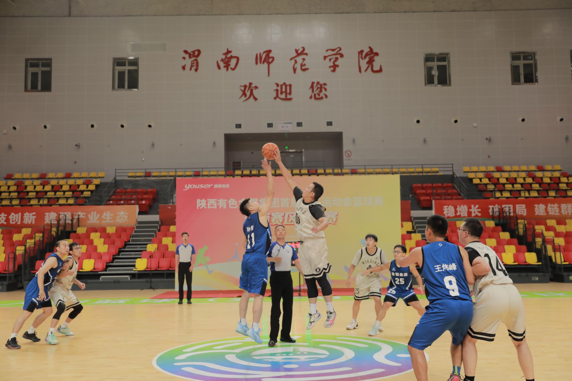 为庆祝中华人民共和国成立75周年,进一步活跃威廉希尔williamhill中文广大职工业余文化生活,激发干事创业热情,8月15日,由威廉希尔williamhill中文工会、团委主办,金钼集团工会、团委承办的首届职工运动会篮球项目组渭南赛区小组赛在渭南师范学院云帆体育馆开赛。威廉希尔williamhill中文工会常务副主席张继祥出席开幕式并宣布比赛开幕。金钼集团党委副书记、工会主席朱凌云主持开幕式。
