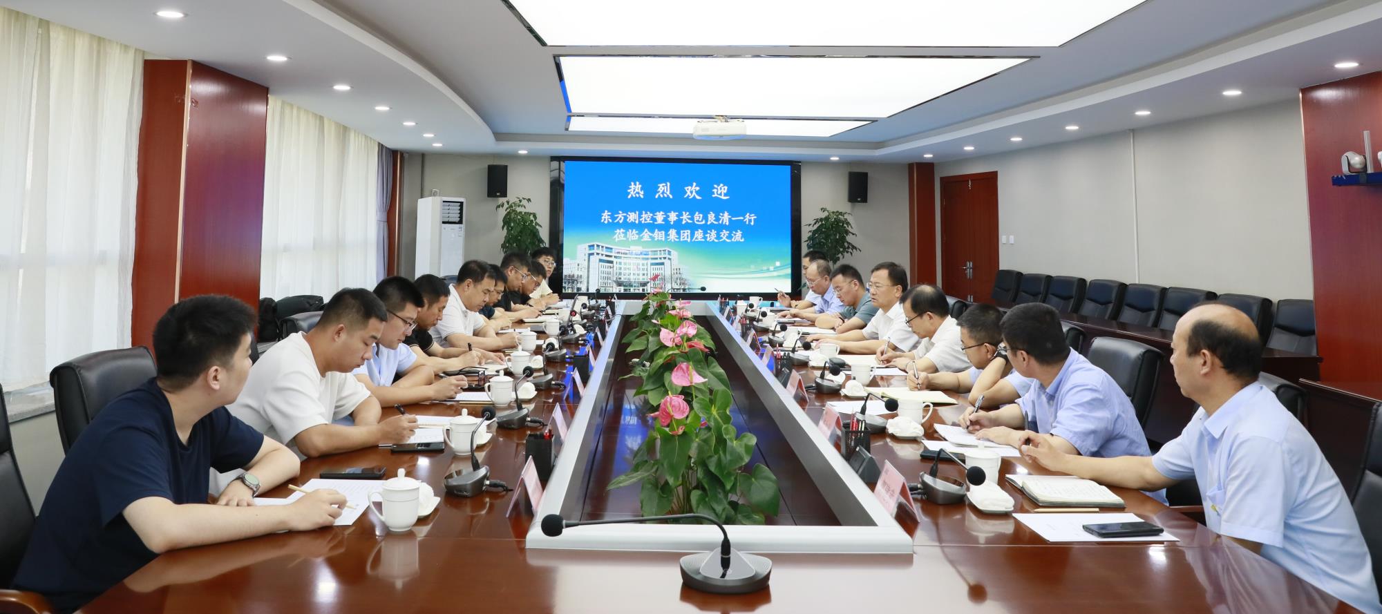 8月21日,东方测控董事长、总经理包良清一行来公司座谈交流。金钼集团党委书记、董事长严平,副总经理、总工程师尹孝刚参加座谈。双方就信息化建设合作,共同推动高质量发展进行了深入交流与探讨。