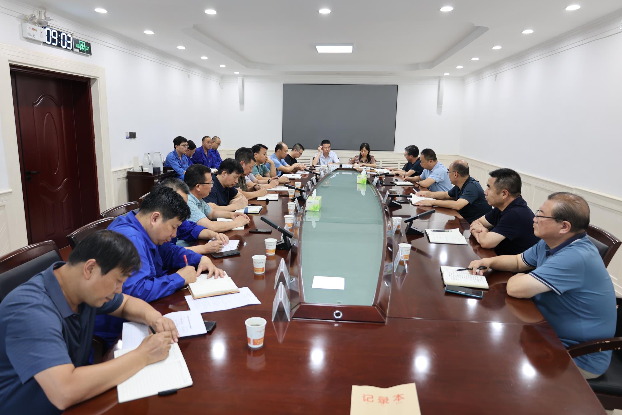 9月2日,陕西锌业公司召开专题会议,传达落实集团公司党委书记、董事长吴群英调研讲话精神。公司党委书记、董事长崔旭东强调部署重点工作,党委副书记、总经理徐靖主持会议,班子成员、总经理助理、各部室、各车间负责人等参加会议。