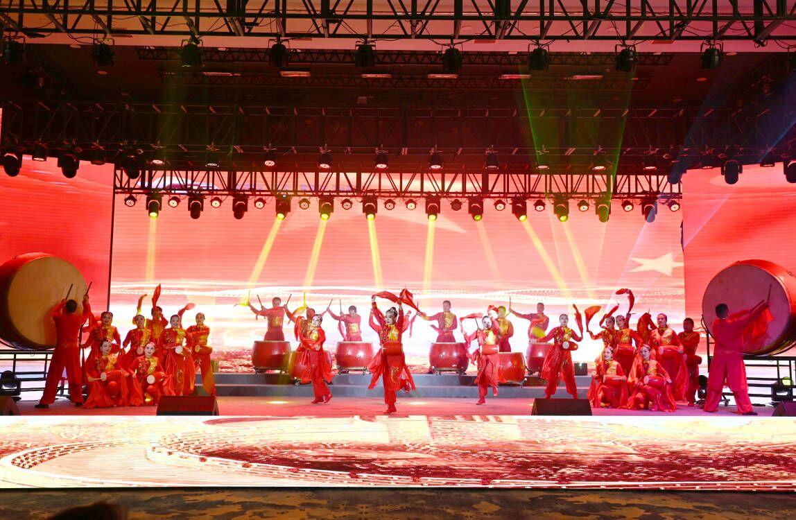 演出在气势磅礴、声韵铿锵的舞蹈《再唱东方红》中拉开帷幕,安塞腰鼓震天响,一曲高歌壮豪情,令在场观众心潮澎湃。