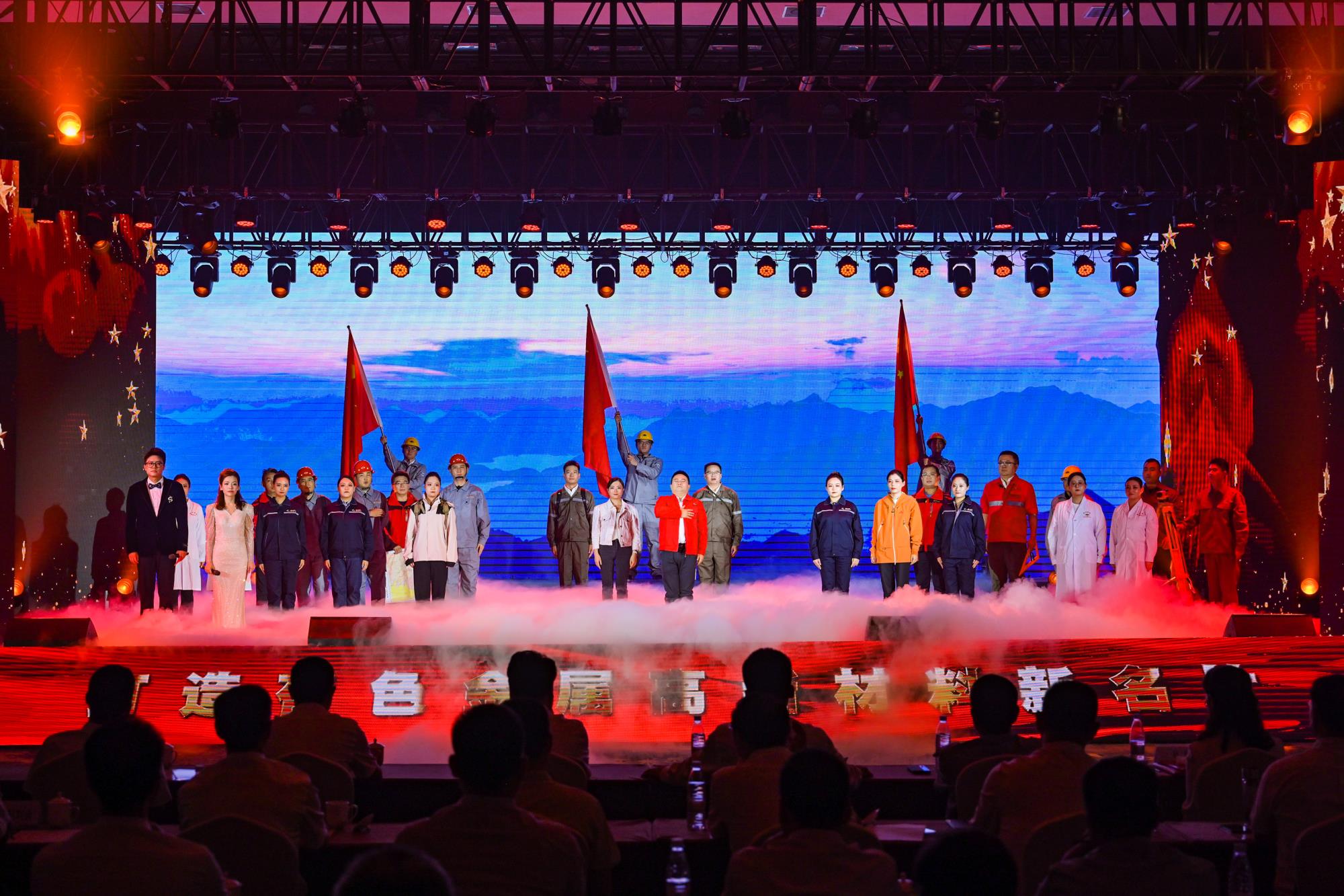 “我们都是奋斗者,报国夙愿挺身偿。勇立潮头搏浪去,万众攻坚铸辉煌。肩担着使命创伟业,复兴路上圆梦想!”一首首动人的歌曲,一段段优美的舞蹈,一句句深情的朗诵,传递着对伟大祖国的无限祝福,对有色事业的执着热爱,对美好生活的炽热向往,凝聚起广大职工为实现中国梦、强企梦而不懈奋斗的壮志豪情。以磐石之志,坚地质初心,广大职工表示将立足本职、担当作为,为实现两集团高质量跨越发展,奋进威廉希尔williamhill中文“千百十一”总目标再创佳绩、再立新功。两集团领导班子成员、部分外部董事,机关全体人员,权属单位主要负责人、工会主席、受表彰代表和职工代表等300余人在现场观看演出。本次活动通过新媒体平台进行了图片直播,截至发稿前,累计吸引12万余人次线上观看。