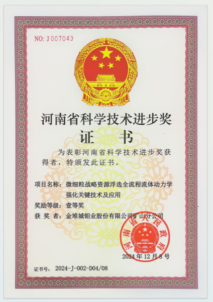 近日,矿山分公司凭借“微细粒战略资源浮选全流程流体动力学强化关键技术及应用”项目,成功斩获“河南省科学技术进步奖”一等奖。这一荣誉不仅标志着矿山分公司在科技创新和实际应用领域取得了新的重大突破,更为战略性矿产资源开发利用提供了强有力的技术支撑。