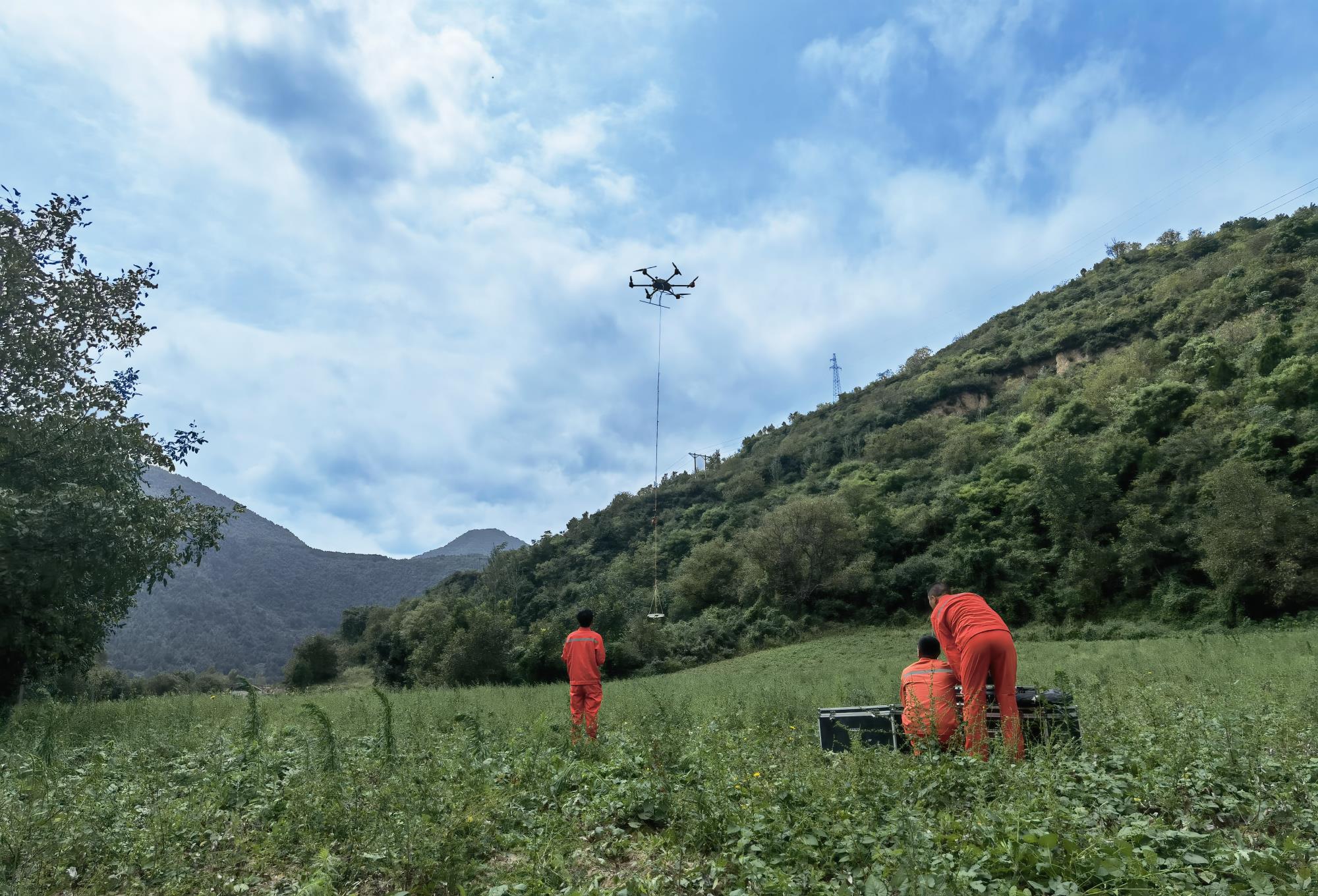 在地矿集团物化探总队公司“湖北省引江补汉地空瞬变电磁物探项目”现场,搭载瞬变电磁设备的无人机向陡峭山体上方“嗡嗡”飞去,在飞行操作手拨动摇杆间,高效完成了靶向区域的地形获取、数据采集等作业,不仅有效避免了工作风险,还大幅降低了技术人员劳动强度和项目成本,是保障野外地勘安全的得力助手。