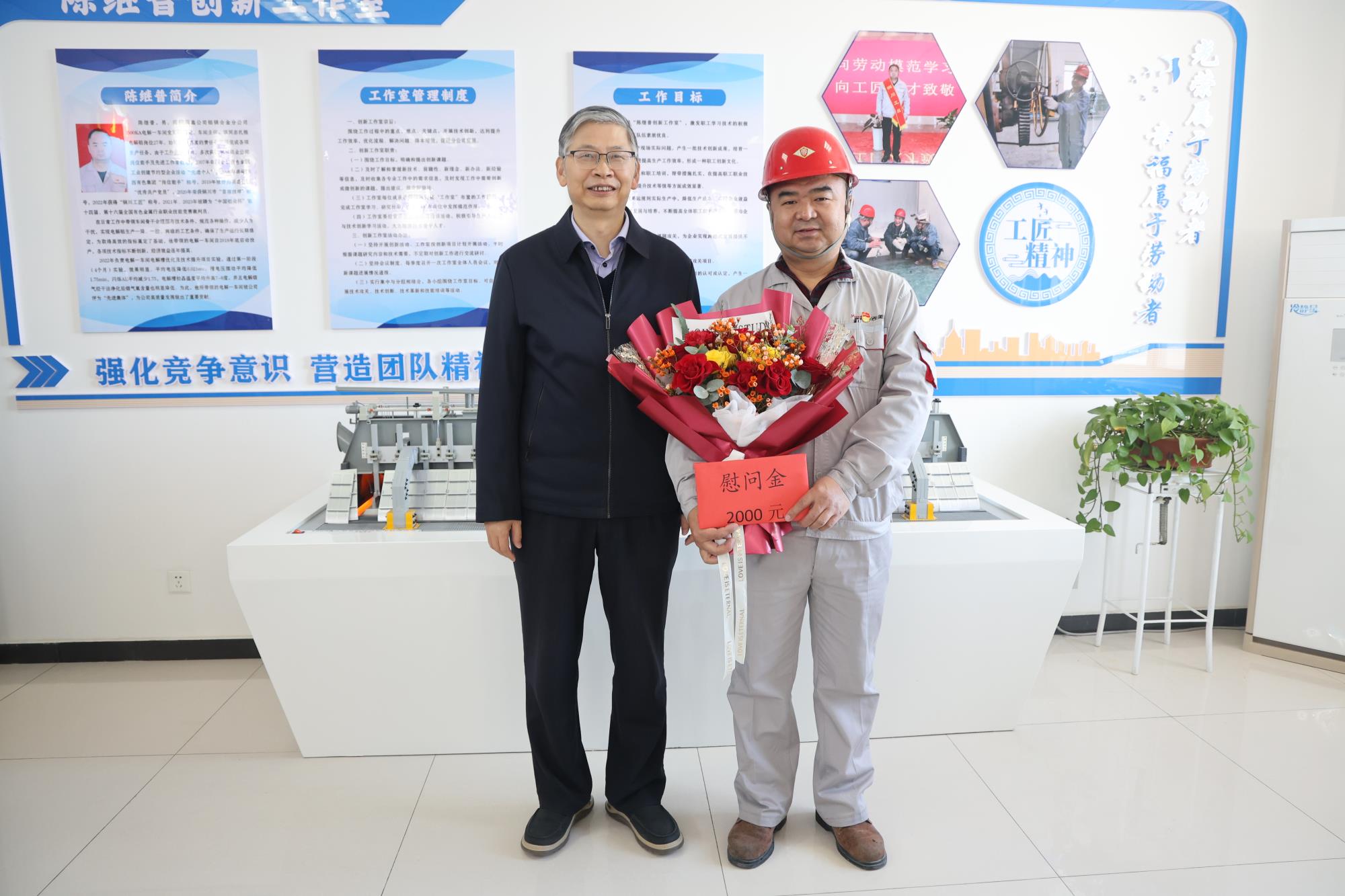 省机械冶金建材工会主席刘小萍、三级调研员吴建斌、集团公司工会副主席张继祥、陕西美鑫公司相关负责人陪同慰问。