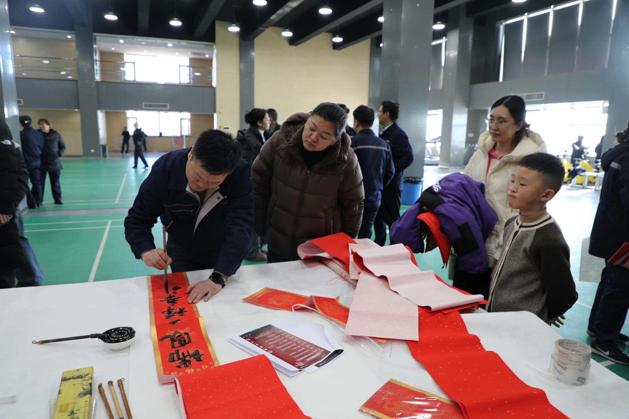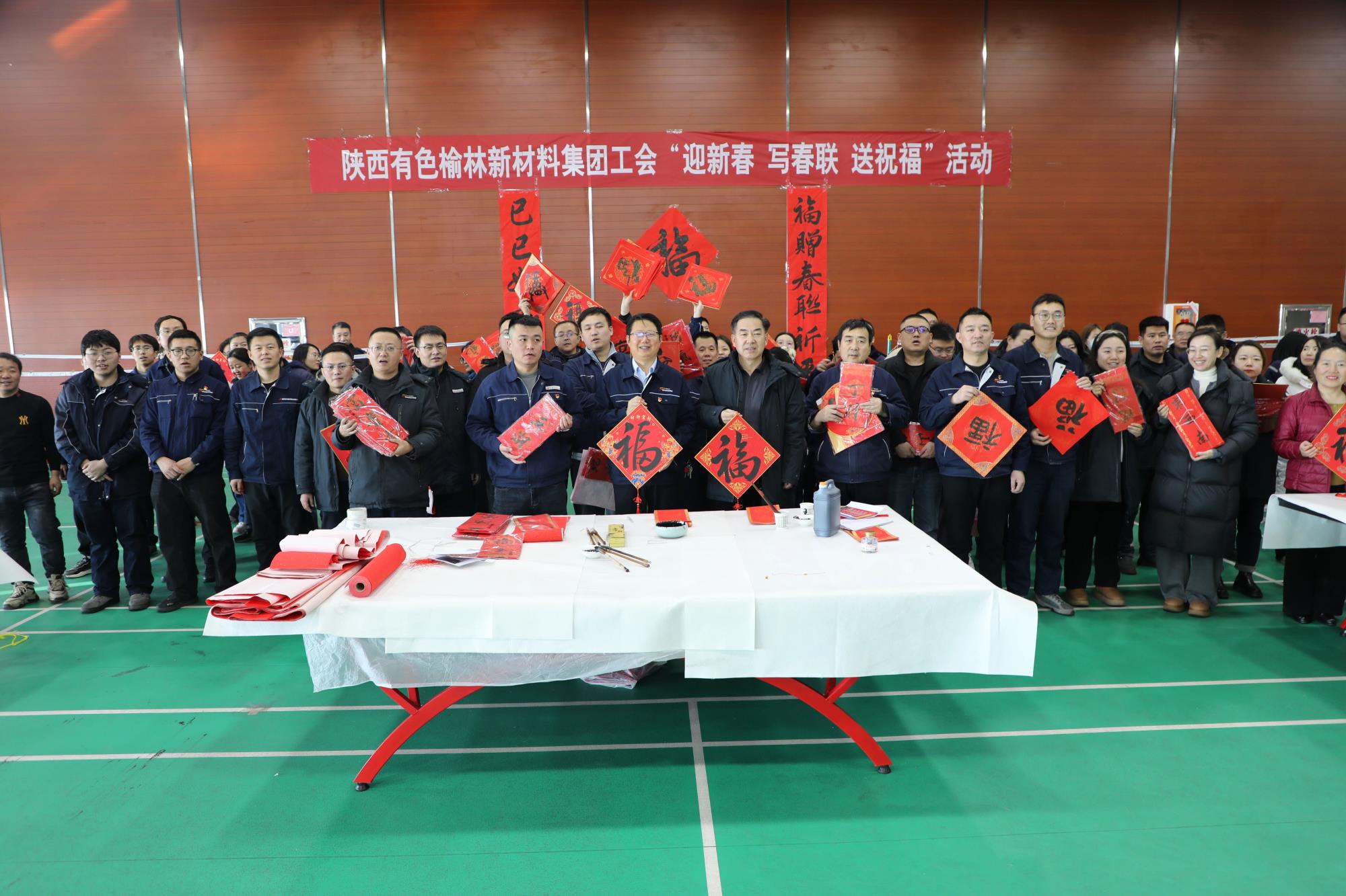 春节将至,年味渐浓,处处洋溢着喜庆的氛围。为弘扬中华优秀传统文化,营造欢乐祥和的节日氛围,丰富职工精神文化生活,把企业的关怀和温暖送到职工手中,1月14日,榆林新材料集团工会在公司文体中心三楼开展了“迎新春 写春联 送祝福”活动。榆林新材料集团党委副书记、工会主席王新权,公司工会委员、职工书画协会成员为公司各单位职工和家属现场送春联、送福字、送祝福。