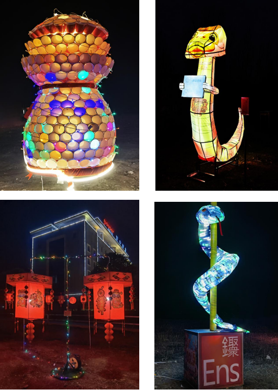 绚丽多彩的花灯,恰似我们企业发展历程的生动缩影。每一盏灯都饱含着匠心与热情,每一束光都照亮着前行的方向。它们不仅是艺术的呈现,更是我们“凝心聚力、勇攀高峰”的象征。大型花灯饱含了汉锌人无限创意和匠心独运,既有企业历史的传承,也有灯光电声色美的完美融合。硫酸车间沸腾炉造型的花灯,熊熊炉火为电锌系统生产了合格原料;熔铸车间完整的生产线花灯,演绎着银光闪闪的锌锭铸造过程;公司工会“金蛇送福”花灯为byxy牌锌锭代言;电锌三车间银光四射的“帆船”把锌锭远销世界;小型兔子灯、莲花灯、宫灯……展示了职工们的心聪手巧和对新年的美好祝愿。引得大家纷纷驻足拍照留念。