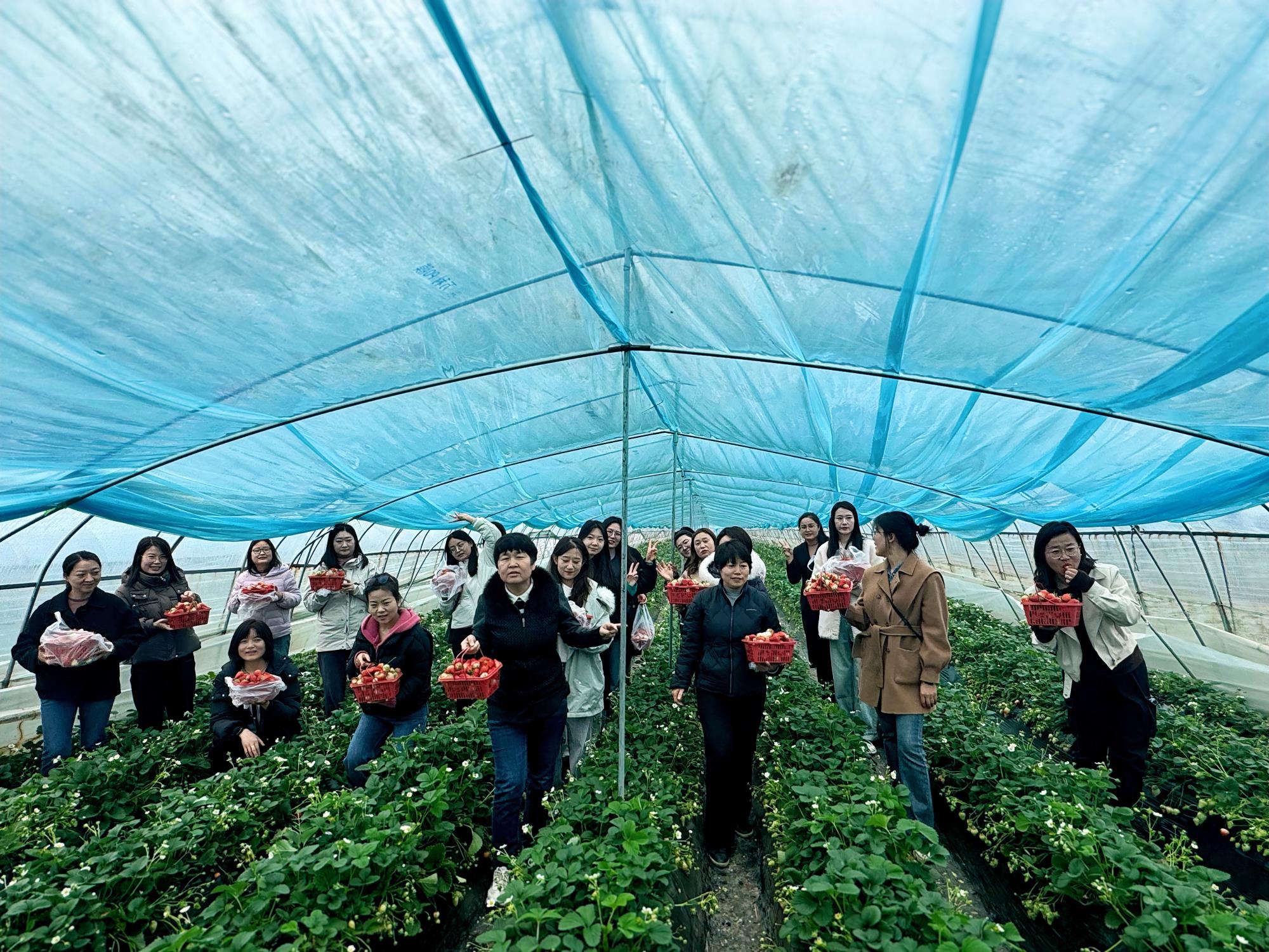 清晨,伴着轻柔的春风,女职工们登上了前往草莓采摘基地的大巴车,一路上,车窗外的景色如幻灯片般快速闪过,车内气氛热烈,你言我语,热闹非常。到了草莓采摘园,清甜的草莓香气扑鼻而来,女职工们迫不及待走进草莓大棚,绿叶底下是一颗颗又大又红的草莓,大家一边采摘一边交流,欢声笑语回荡在整个大棚里。