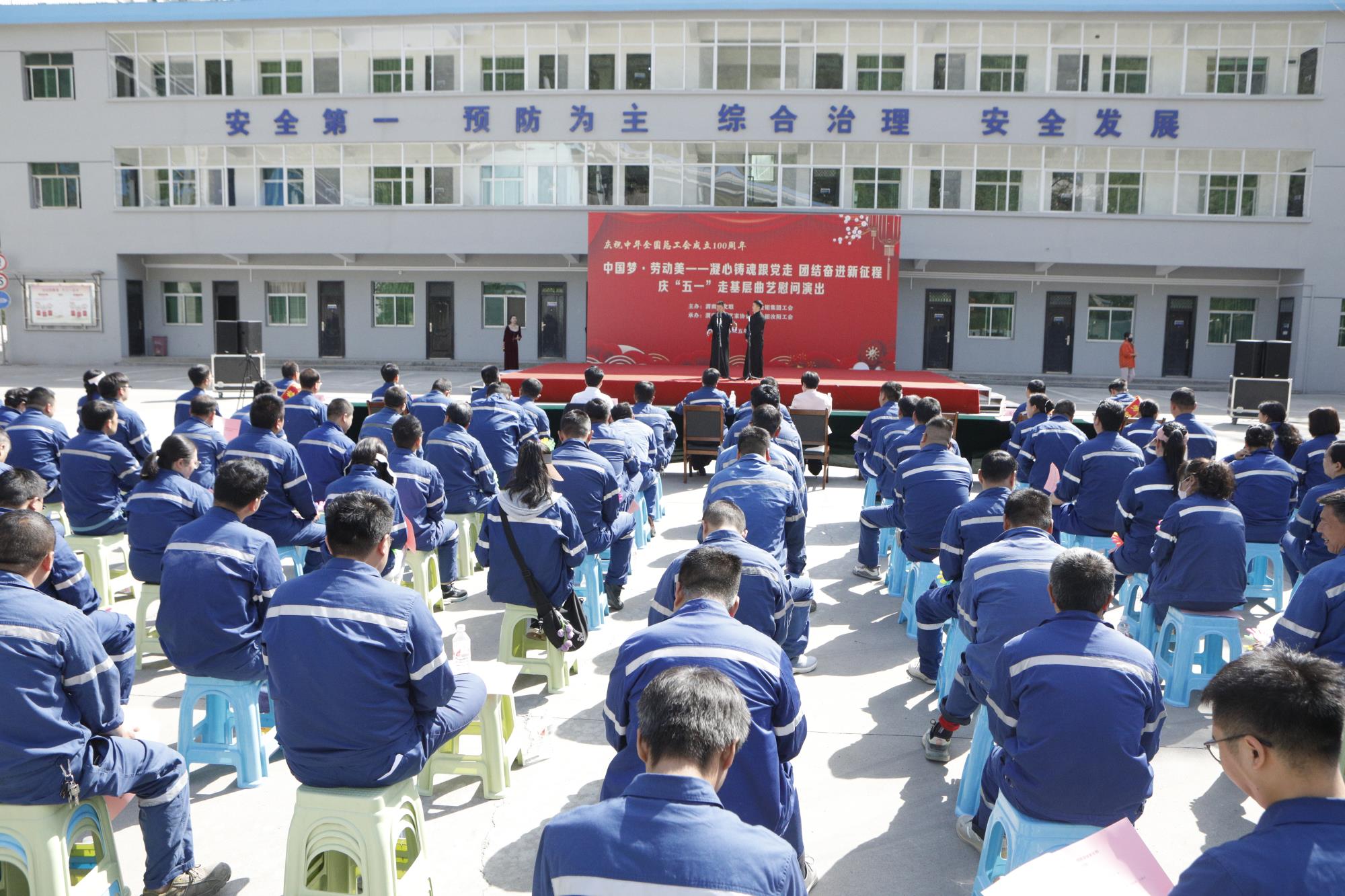 在“五一”国际劳动节来临之际,4月23至25日,由金钼集团工会联合渭南市文联主办,各相关单位工会和渭南市曲艺家协会承办的"中国梦·劳动美——凝心铸魂跟党走 团结奋进新征程"主题文艺演出走进五洲矿业、冶炼分公司和金钼汝阳生产一线。公司党委副书记张保生出席活动,为劳模、工匠及创客室团队领衔人送上鲜花,并向奋战在基层的广大劳动者致以崇高敬意。