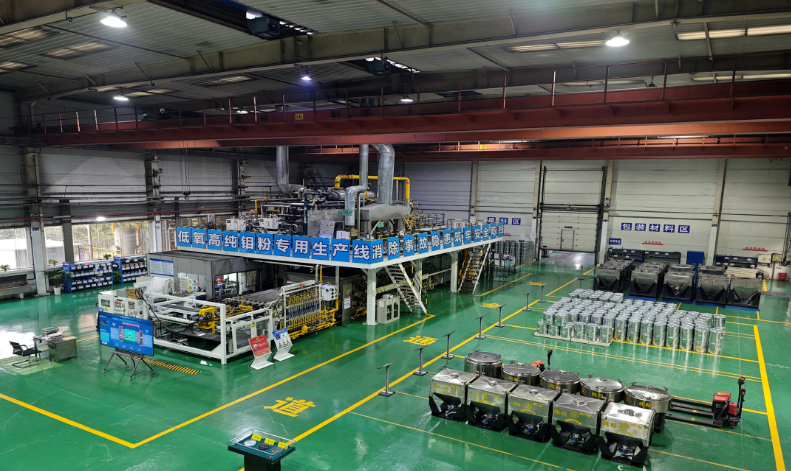 金属分公司副总经理、项目责任人赵新瑞强调:“该项目的成功研发源于客户需求的精准对接,同时也得益于公司在钼金属产业化研发领域的深厚积累。”金属分公司依托金钼集团优质的原料供应和品牌优势,在钼金属领域深耕多年,拥有专业的技术研发团队和先进的生产设备。目前,拥有德国、美国及国产三条钼粉生产线,具备多样化的工装设备和持续稳定的供货能力,为钼金属的研发和产业化提供了坚实保障。