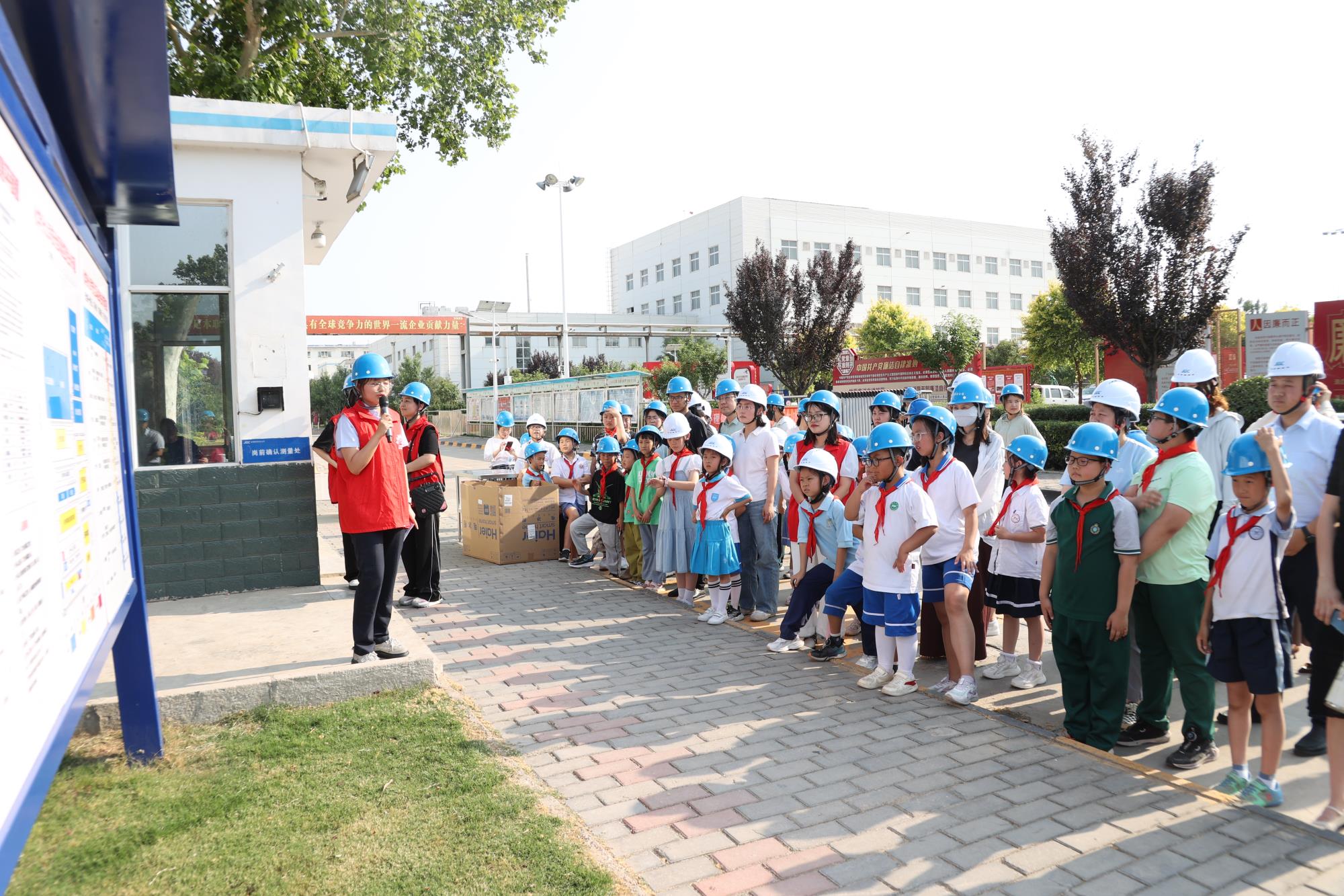 在化学分公司厂区,专业的安全人员讲解为孩子们筑起了第一道安全防线。随后在讲解员的带领下,孩子们满怀期待地走进生产安全区域,高大的厂房、复杂的管线瞬间激发了他们强烈的好奇心,“钼是什么东西?”“处理过的水为什么不能喝?”,孩子们化身“工业探秘者”,问题层出不穷。讲解员细致耐心的回答,为大家逐一揭开了钼产品种类和生产流程。随后孩子们走进金钼集团展厅,每一件展品、每一个视频,让大家在好奇中思考,在探索中收获知识,进一步加深了对公司的认识,增进了对企业的情感,对家长的敬佩之情也油然而生。