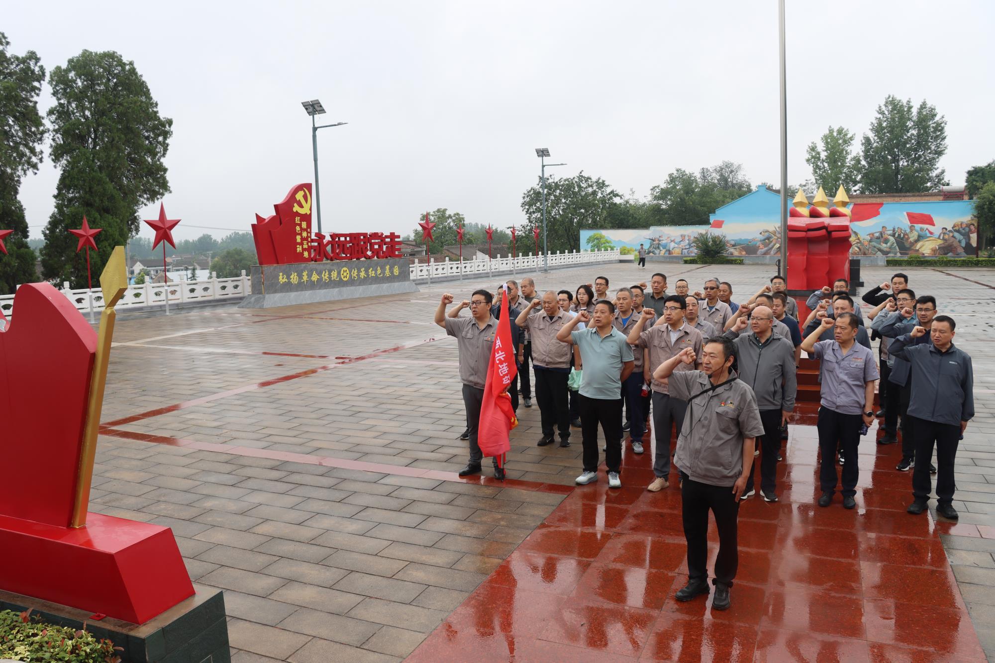 红色研学悟初心,传承革命精神血脉。在凤翔区陈村镇紫荆村“西府出击”红色教育基地,讲解员带领大家参观了屈家山西北野战军司令部旧址。一件件斑驳的革命文物、一张张泛黄的历史照片,生动再现了老一辈革命家“浴血奋战求解放”的光辉历程。党员干部在沉浸式研学中,深刻感悟西北野战军“不怕牺牲、勇于担当”的革命精神,真切体会到革命道路的艰辛与革命成果的珍贵。活动尾声,全体党员在党旗下庄严重温入党誓词,以铿锵誓言重忆初心使命。