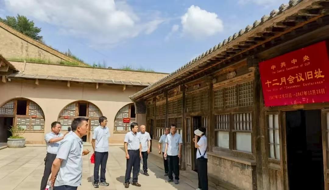 活动首站,党员干部走进米脂县杨家沟革命旧址,开展“红色沃土砺初心,主题教育铸清风”主题党日活动。作为党中央转战陕北时期的重要驻地,杨家沟见证了中国革命的重大历史转折。在讲解员的生动讲述中,大家怀着敬畏之心,先后参观了毛泽东、周恩来等老一辈革命家旧居,驻足凝视革命先辈们工作和生活过的窑洞,聆听“十二月会议”等重大历史事件。党员们沉浸式感悟党中央转战陕北时期“运筹帷幄决胜千里”的战略智慧,深刻体会老一辈革命家不畏艰险、艰苦奋斗的革命精神,进一步坚定理想信念,筑牢信仰之基,补足精神之钙。