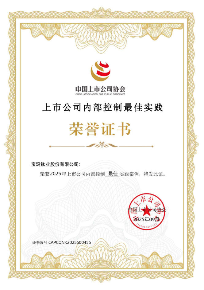 9月22日至23日,由中国上市公司协会主办的“中上协财专委走进上市公司系列行——北京”暨“2025年中国上市公司内部控制案例征集”结果发布和交流活动在北京举行。宝钛股份荣获“2025年上市公司内部控制最佳实践案例”荣誉。
