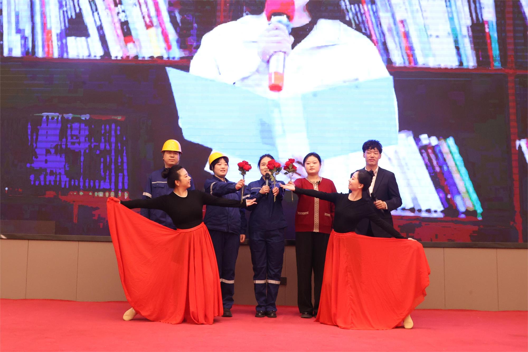 在张保生、王梅等五位嘉宾的共同启动下,“她声音”朗诵与表达赋能项目正式启动。随后,四位获奖职工代表以书传情,依次分享了获奖作品:金钼汝阳丁志丹深情讲述从学生到职场人的坚守、质管中心李侠重温钼都峥嵘岁月与质量人的匠心精神、物流中心魏璐瑶分享在阅读中感悟的善良与勇气、矿山分公司东蕊带领观众领略唐诗的绚烂色彩与家国情怀。现场观众静心聆听,共同感受文字背后的温度与力量。最后原创诵演节目《钼韵巾帼颂,群芳绽芳华》,通过动人场景生动展现了金钼巾帼的卓越风采。