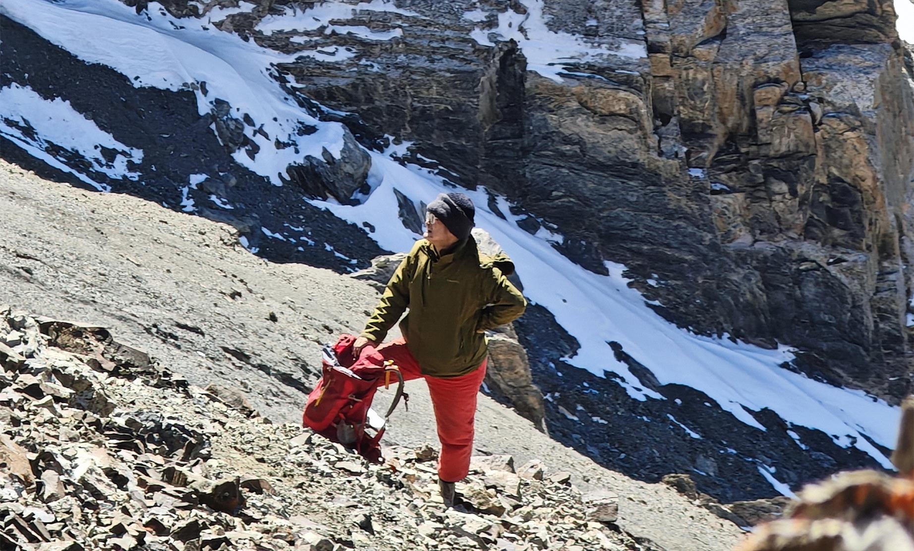 风雪是自然最凌厉的笔触,把地质人塑成移动的“雪人”。浓雾弥漫处,岩石的棱角在能见度不足五米的混沌里随时成了可能倾覆的陷阱。那顶被积雪压弯的宽檐帽,在雪粒中仍紧盯着岩石的眼镜,雪窝里深深浅浅不一的足印——每一步都是对“艰辛”专业和意志的考验。在海拔3600米的碎石坡上,地质锤的敲击声被狂风撕碎,却从未停下节奏;在零下十几度的严寒里,冻僵的手指仍牢牢攥着罗盘,只为勾勒出地层最真实的褶皱。
