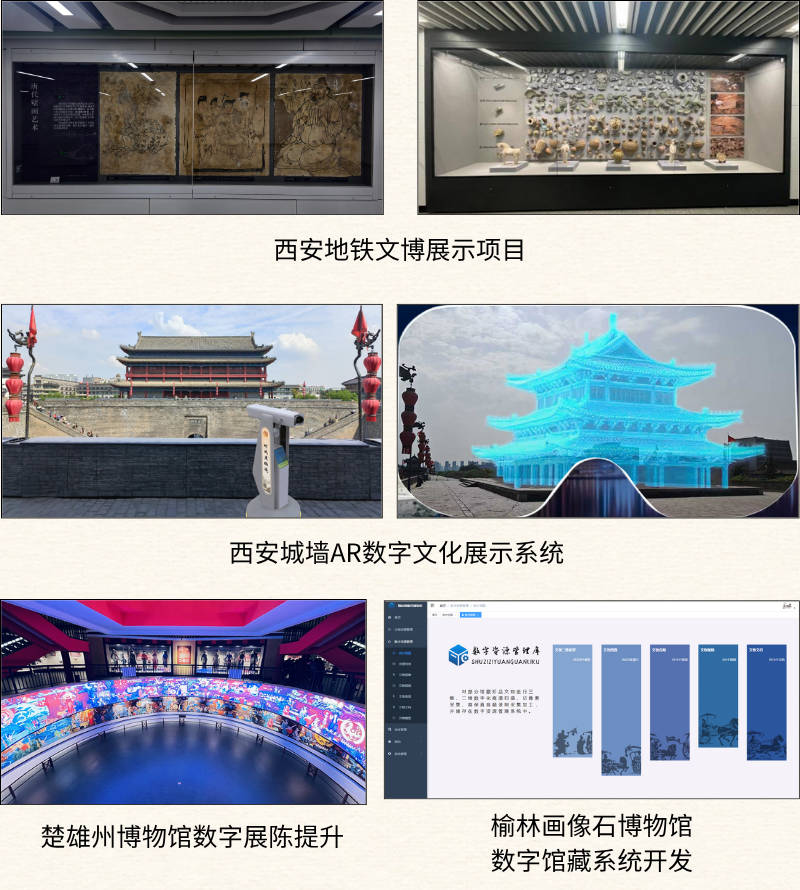 工程公司坚持“产、学、研”一体化发展,组建西北有色文化遗产保护与数字化科技创新中心,持续推动科研成果转化。先后斩获实用新型专利6项、发明专利1项、省级科技成果登记11项,成功开发文物数字化保护、数字化利用、展陈设计、文创产品研发、工业仿真等多元业务模式。运用三维激光扫描、高清成像、AR/VR、软件开发、数字内容制作等技术,为客户提供旅游宣传、景区互动导览、馆藏数字信息管理等全方位服务,携手西安地铁打造青龙寺、万寿路等站点“一瞥式”文博展,构建安仁坊、西安城墙等多处AR望远镜数字文化展示平台,开发榆林市汉画像石博物馆数字馆藏系统,以科技为文明传承注入新活力。