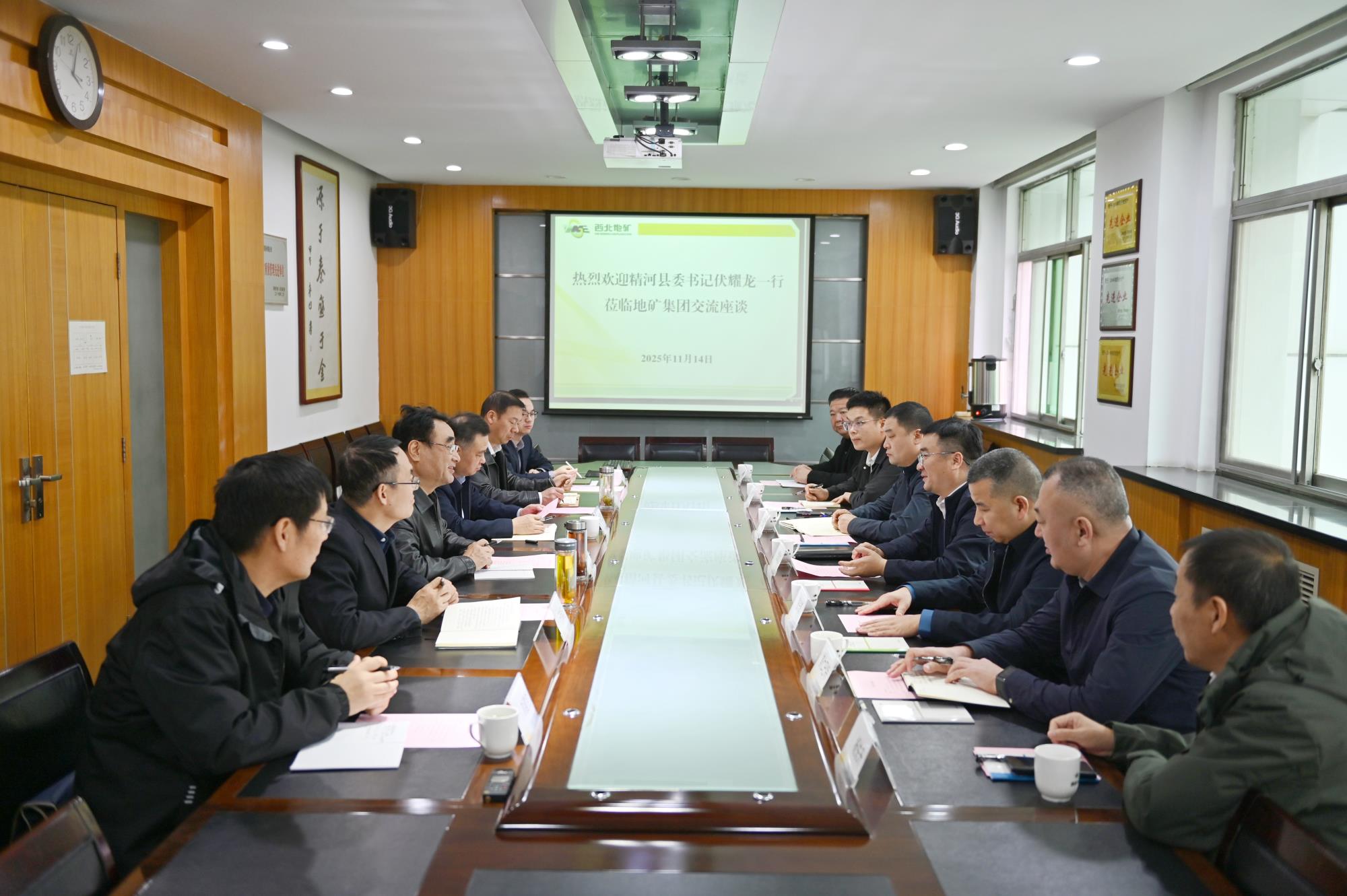 11月14日,新疆精河县委书记伏耀龙一行到访地矿集团,双方围绕精河县矿产资源勘查开发、产业融合发展等座谈交流,进一步拓展合作空间,共话企地共赢新路径。地矿集团党委书记、董事长秦西社主持会议。精河县委常委、党组副书记、副县长张兴凯,地矿集团党委副书记、董事、总经理陈超,地矿集团党委委员、副总经理、总工程师王瑞廷,地矿集团党委委员,西北资源总经理刘非参加座谈。