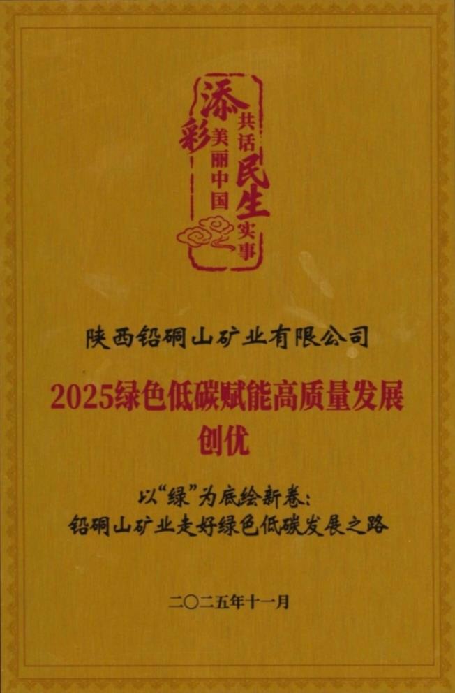 作为一家肩负着铅锌资源保障重任的矿山企业,铅硐山矿业公司三十多年来积极践行“绿水青山就是金山银山”理念,将筑牢秦岭生态安全屏障作为不可逾越的政治底线。其以“生态修复、科技赋能、效益共赢”为核心的绿色转型成果,近日被收录于全国《绿色低碳赋能高质量发展实践案例汇编(2025)》,并荣获“2025绿色低碳赋能高质量发展创优奖”,系统展示了传统矿山绿色升级的创新实践。