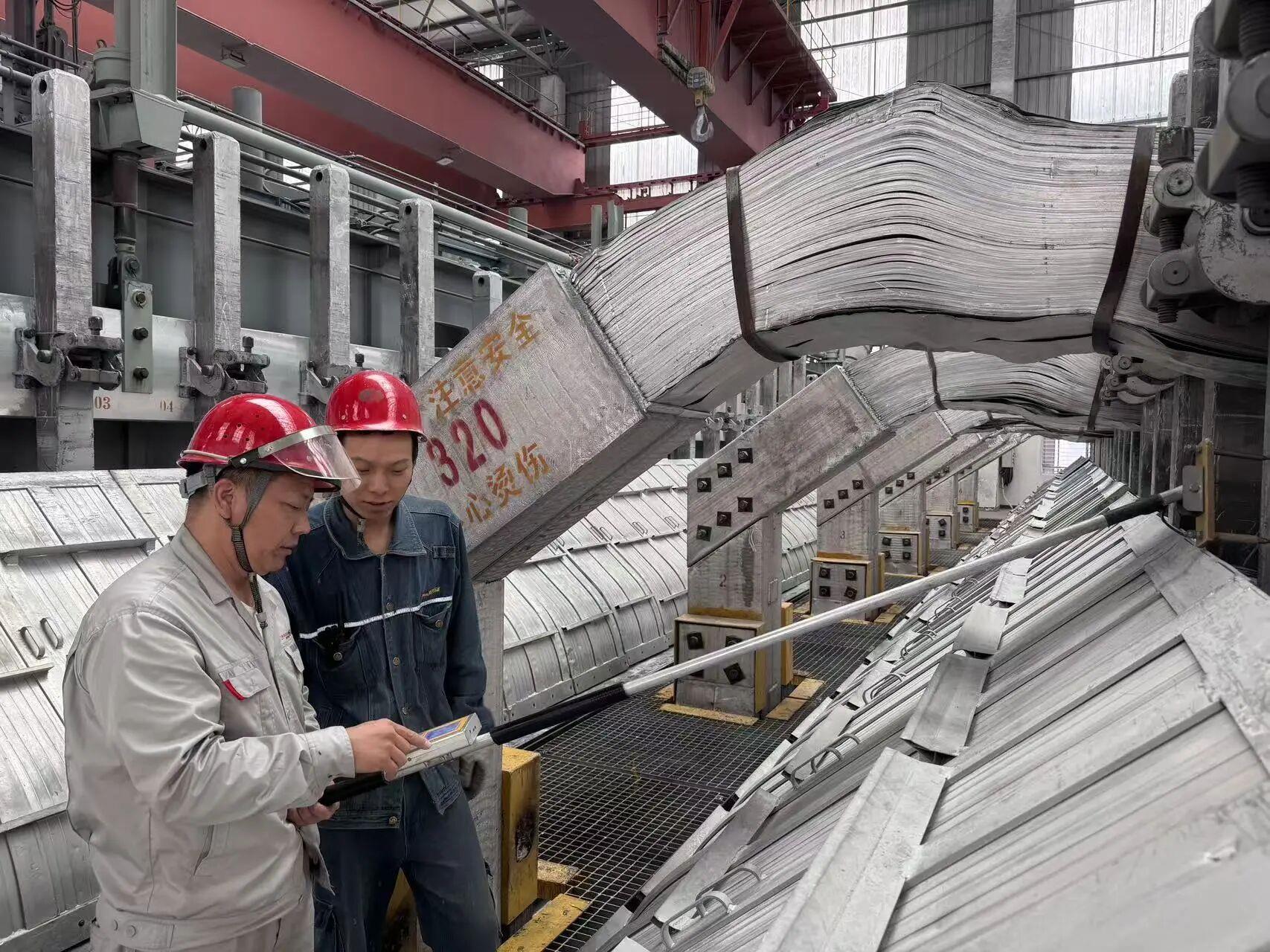 面对电解铝生产中的技术瓶颈,任雷牵头成立攻关小组,创新研发停槽区压降管理装置,一举解决无功空耗问题,形成了可复制推广的操作规范,为行业技术升级贡献了“美鑫方案”。在任雷的带领下,车间各项核心技术指标持续优化,2025年原铝产量完成年度计划的100.54%,高品质原铝产量提升,电流效率提升至91.6%,直流电耗、阳极消耗等关键指标均显著下降,达到行业先进水平。由任雷参与的“开槽阳极”等实验成果推广后,槽平均电压降低8mV,吨铝直流电耗减少22kW·h,真正实现了向技术创新要效益。