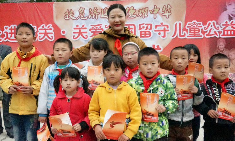 志愿者和留守儿童在一起