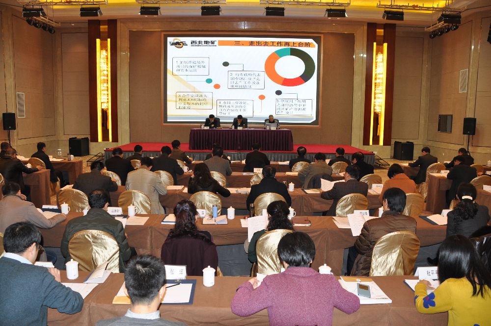 1月20日,西北有色地质矿业集团有限公司、陕西黄金集团股份有限公司2015年工作会议在宝鸡召开。会议全面总结2014年工作,分析当前形势及发展中存在的问题,制定应对措施,安排部署2015年各项工作。地矿集团及黄金集团党委书记、董事长孙峰主持会议并讲话,地矿集团总经理刘中华、黄金集团总经理徐振平分别作地矿集团和黄金集团工作报告。两公司领导金万锋、吴春虎、姜明辉、高菊生、任小华、陈德魁、任革凡、刘利军、王民良、李福让出席会议,各单位党政负责人、主要矿山企业负责人、机关各处室负责人等70人参加会议。