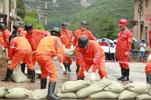 这是陕西铅硐山矿业有限公司正在举行的蒋家沟排渣场泥石流地质灾害现场处置应急演练的情景。