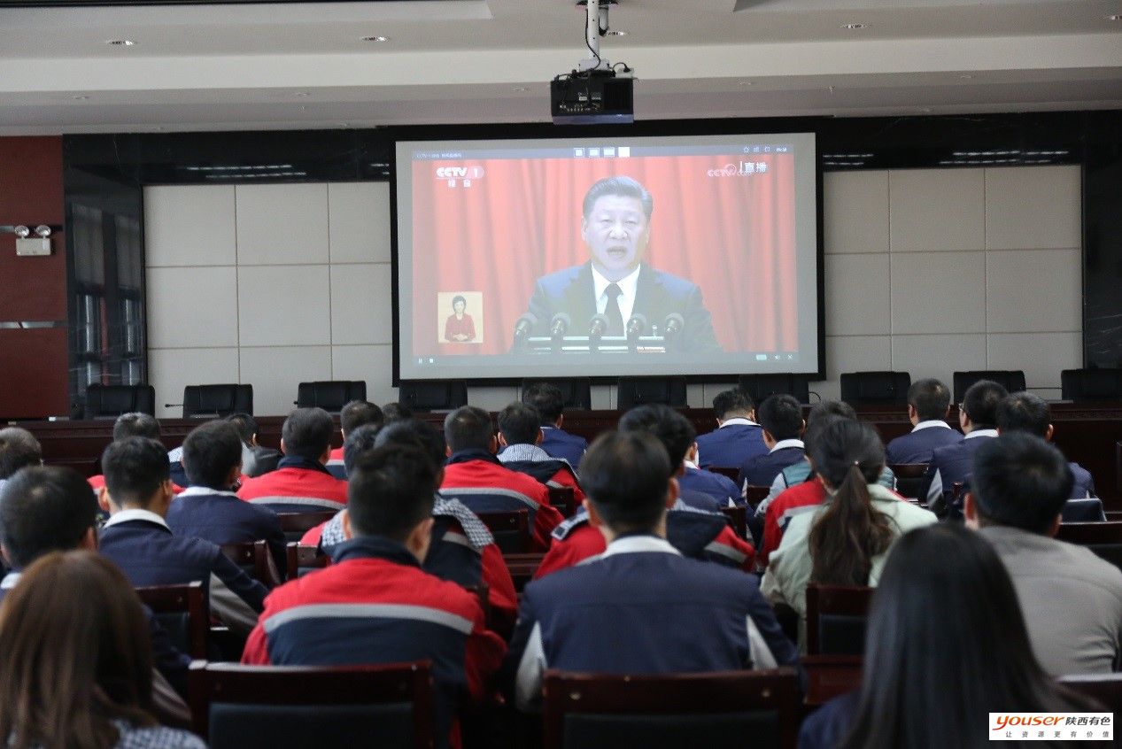 10月18日上午9时,举世瞩目的中国共产党第十九次全国代表大会在北京人民大会堂隆重开幕。为庆祝党和国家这一盛事,根据陕西有色集团党委要求,天瑞硅材料党委组织党员干部在四楼多功能会议室收看了党的十九大开幕会直播盛况。