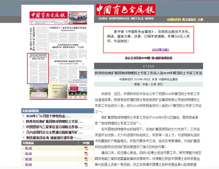 近日,中国科学技术协会公布了我国2018年模范院士专家工作站遴选结果,陕西有色权属的西北有色地质矿业集团有限公司地球物理院士专家工作站成功入选,成为2018年陕西省成功入选的2个模范院士专家工作站之一。