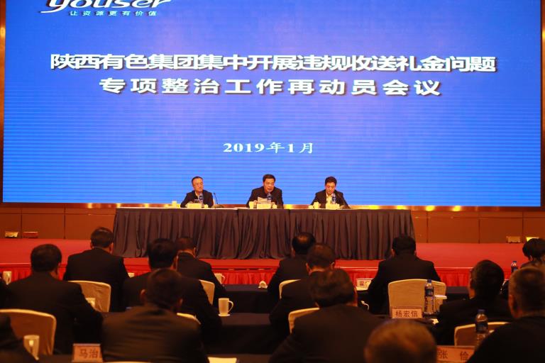 1月17日,陕西有色集团召开集中开展违规收送礼品礼金问题专项整治工作再动员会,贯彻落实省纪委督导组反馈意见和省国资委党委关于违规收送礼品礼金再动员大会的部署要求,进一步统一思想、凝聚共识,传导压力、精准发力,把专项整治工作引向深入。