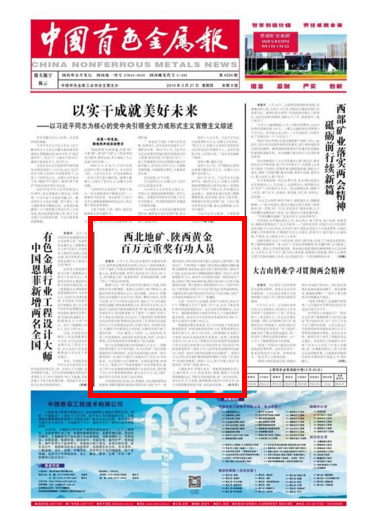 3月1日,西北有色地质矿业集团有限公司、陕西黄金集团股份有限公司(以下简称两集团)召开了地质工作推进会暨地质找矿、科技创新成果表彰大会,重奖在地勘、科研方面的有功人员近130万元,再次掀起了新一轮地质找矿、科技创新热潮,点燃了职工干事创业的热情。