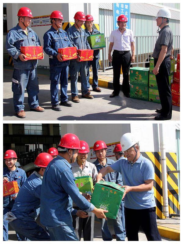 8月13日,秋老虎发威,铜川室外温度仍在35℃以上。冒着高温酷热,陕西有色集团工会主席魏俊英、副主席刘朝斌深入陕西美鑫公司电解、铸造生产一线,开展“送清凉”活动,将集团公司的关心关爱传递到战高温斗酷暑的一线职工心中。该公司党委书记、董事长高晓兵、党委副书记、纪委书记李书平、监事会主席王志锋陪同慰问。