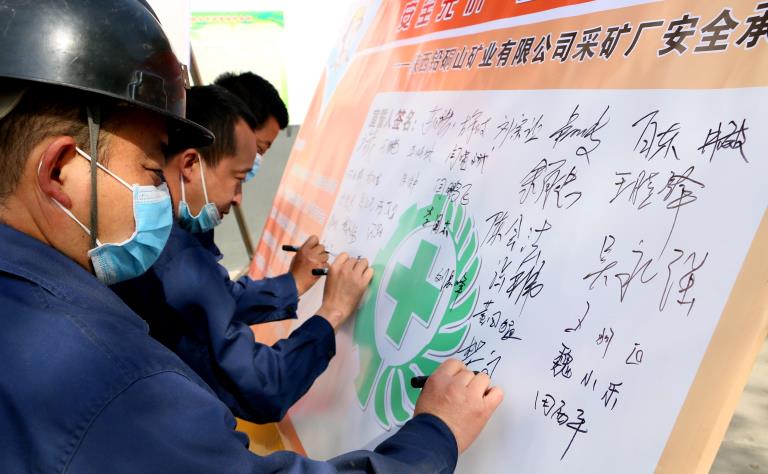开展仪式上,公司采矿厂及两个外包作业项目部50余名生产骨干集体签名承诺安全,并作出庄严宣誓。“我的安全我负责,工友的安全我有责,公司的安全我尽责……”铮铮誓言回声嘹亮,表达着对生命的敬畏,对责任的担当。