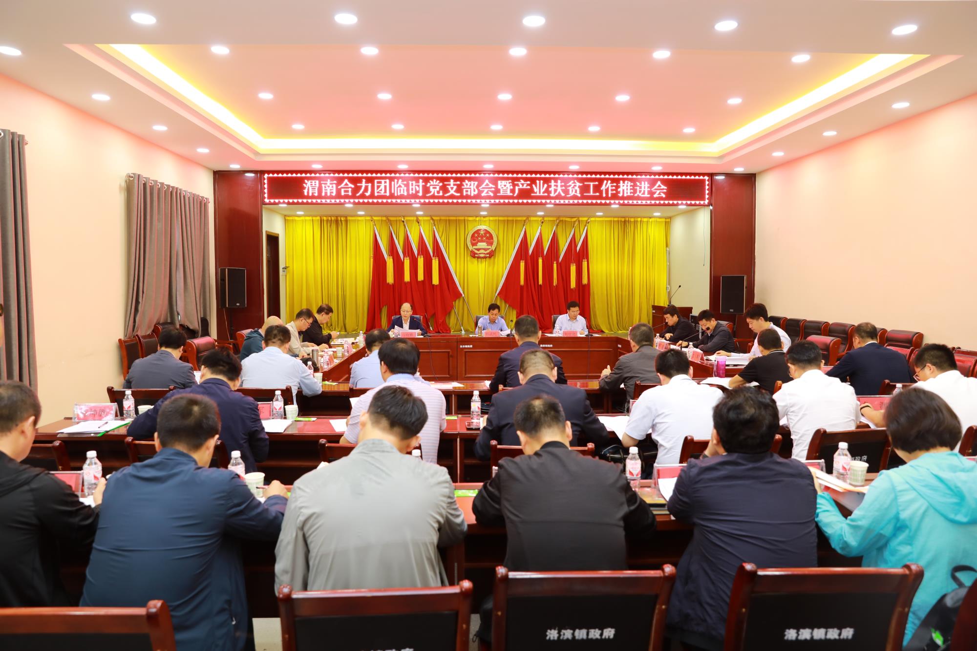 随后在洛滨镇政府,渭南合力团召开了临时党支部会议暨产业扶贫工作会。会议由渭南合力团副团长、陕西有色集团党委副书记郭仕龙主持。会上,渭南合力团副团长单位,中铁二十局集团党委委员、副总经理、总会计师马晓辉领学了省委、省政府《关于深入学习贯彻习近平总书记来陕考察重要讲话重要指示精神 全面打赢脱贫攻坚战的意见》;渭南合力团临时党支部委员、陕西铁路集团党委书记、董事长乔怀玉重温了省国资委印发的《国企合力团助力脱贫攻坚2020年度工作要点》;渭南合力团办公室主任、陕西有色集团扶贫办主任艾军从产业扶贫项目总体情况、存在的问题及不足、下一步工作开展等方面汇报了渭南合力团产业扶贫工作情况;渭南合力团临时党支部副书记、渭南市副市长杨武民通报了渭南市脱贫攻坚面临的形势,以及今年渭南市脱贫攻坚的主要的任务。