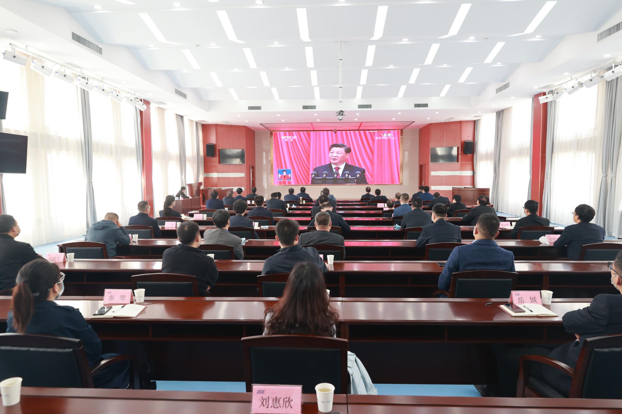 金钼集团党委书记、董事长程方方,党委副书记、总经理柳晓峰等公司领导班子成员,集团、股份机关各党支部书记和中层领导干部等分别集中观看了开幕会盛况直播,认真聆听学习习近平总书记在大会上所作的报告。各单位也组织党员干部职工,通过电视、电脑、手机客户端等方式进行收听收看。