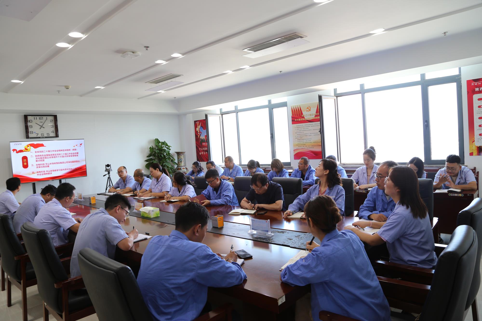 9月19日上午,光电科技党委书记、董事长刘建中为所在的机关第一党支部党员宣讲党的二十届三中全会精神,机关第一党支部书记张楠主持宣讲会议,第一党支部全体党员参加宣讲会议。