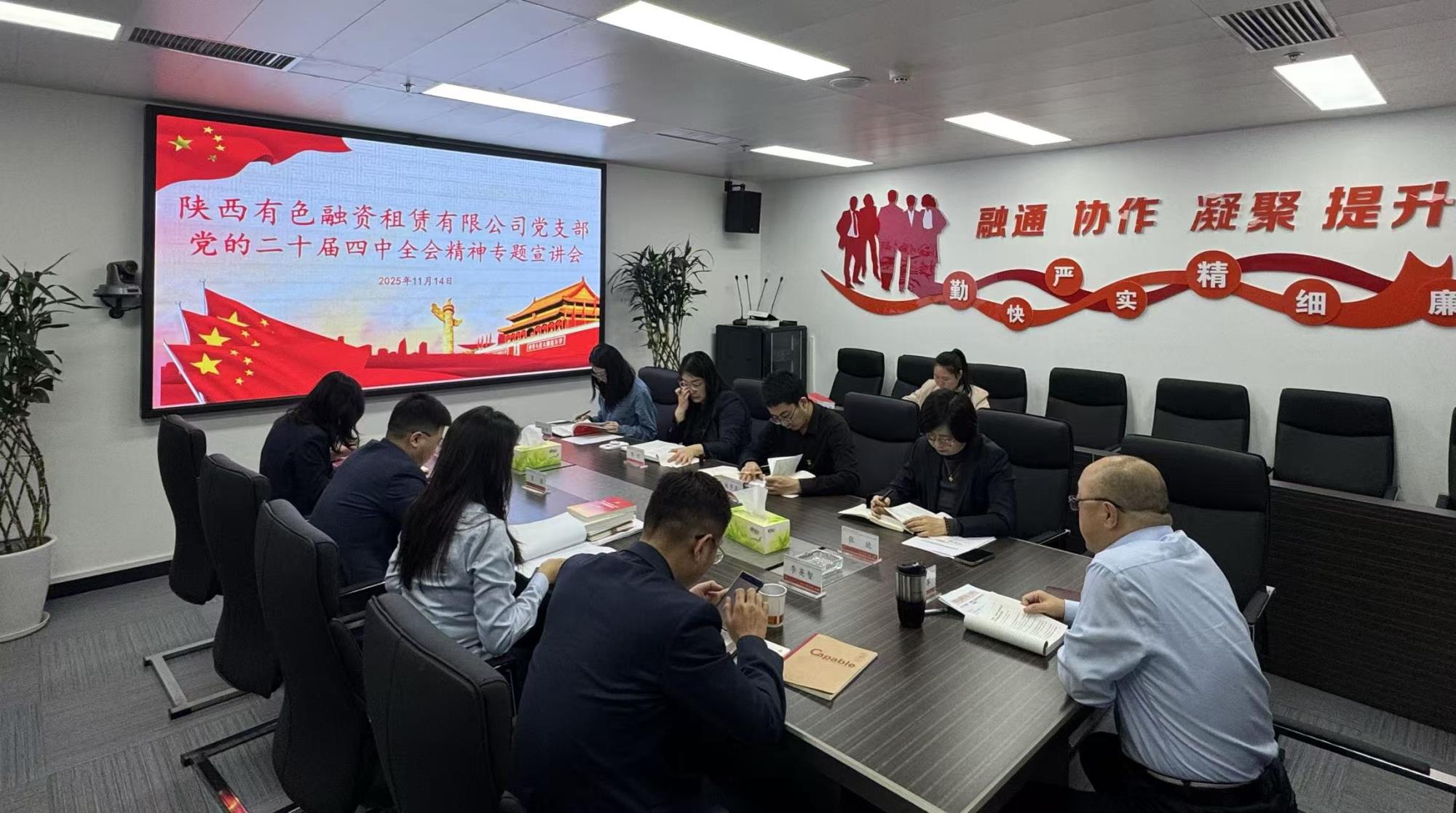 为推动党的二十届四中全会精神入脑入心、落地生根,11月14日上午,陕西有色融资租赁有限公司召开党的二十届四中全会精神专题宣讲会。