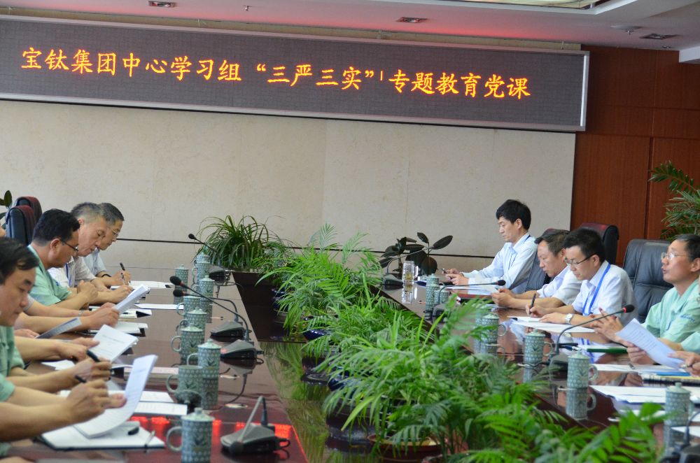 6月9日,宝钛集团党委中心学习组在机关九楼会议室召开“三严三实”专题学习会,集中学习了习近平总书记关于“三严三实”的论述以及省委书记赵正永在全省“三严三实”专题教育党课会议上的讲话。随后,党委书记王文生作了题为《树立严实工作态度,创新驱动企业发展》的专题教育党课。公司领导班子成员及部分副总、党委部门负责人参加了会议。 王文生指出,4月10日,中央专门下发《关于在县处级以上领导干部中开展“三严三实”专题教育方案》,对专题教育的总体要求、方法措施、组织领导作出了安排部署。5月27日,陕西有色集团召开“三严三实”专题教育党课会议,并要求从五月份开始全系统进行“三严三实”专题教育,黄晓平书记为大家讲了党课。根据上级部署,这次教育不以抓集中活动的形式开展,而是要作为重大政治任务融入领导干部经常性学习教育,与日常工作有机融合、相互促进。我们要将学习提高认识贯穿始终,采取个人自学与中心组学习相结合的方式 ,领导要带头讲好专题党课。专题教育的形式,以领导干部讲党课启动开局,领导班子其他成员也要在适当范围讲党课,今年的民主生活会和组织生活会,也要以“三严三实”为主题,起点要高,要求要严。 王文生强调,要把严实的工作方法落到实处,有规划、有步骤地作好企业发展中的各项工作。要在“一带一路”、“中国制造2025”战略、“工业4.0”等重大机遇面前,加快公司的“两化融合”步伐,以创新驱动企业发展。要通过“三严三实”专题教育,对党员领导干部的精神状态、作风养成、能力素质提出更高标准、更高要求,打造一支高素质的干部队伍,团结带领广大职工群众高效推进企业的改革发展。